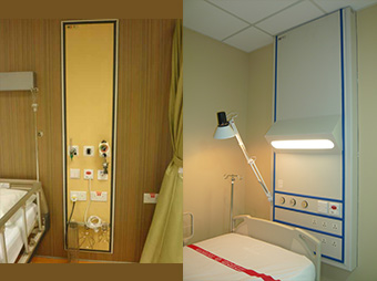 Vertical Bed Head Panels has both surface and flush mounted design with other features to house medical gas, electrical and ELV equipment etc. The design is meant to flush to ceiling level to eliminate wall hacking work.